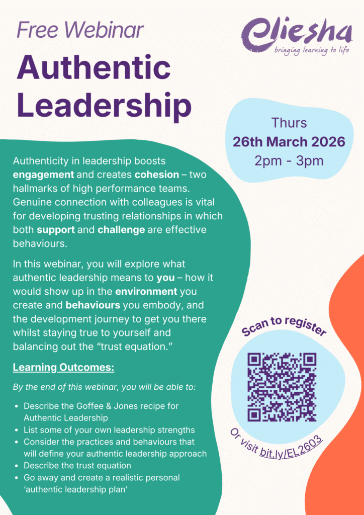 Our popular free webinars seek to provide a valuable hour of impactful CPD for busy professionals, as well as offer a feel for Eliesha’s practical, people-focused approach to learning and development. Check out the flyer below for more information about this webinar and click anywhere on the flyer itself or on the button below it to register for your free place(s).