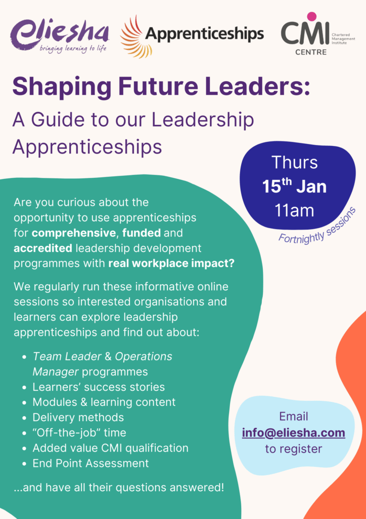 These online sessions – held every fortnight – are the perfect chance to learn all about the opportunity that Leadership Apprenticeships represent for funded, accredited and impactful management and leadership development programmes. You’ll also be able to have all your queries and questions answered by our friendly and experienced team.